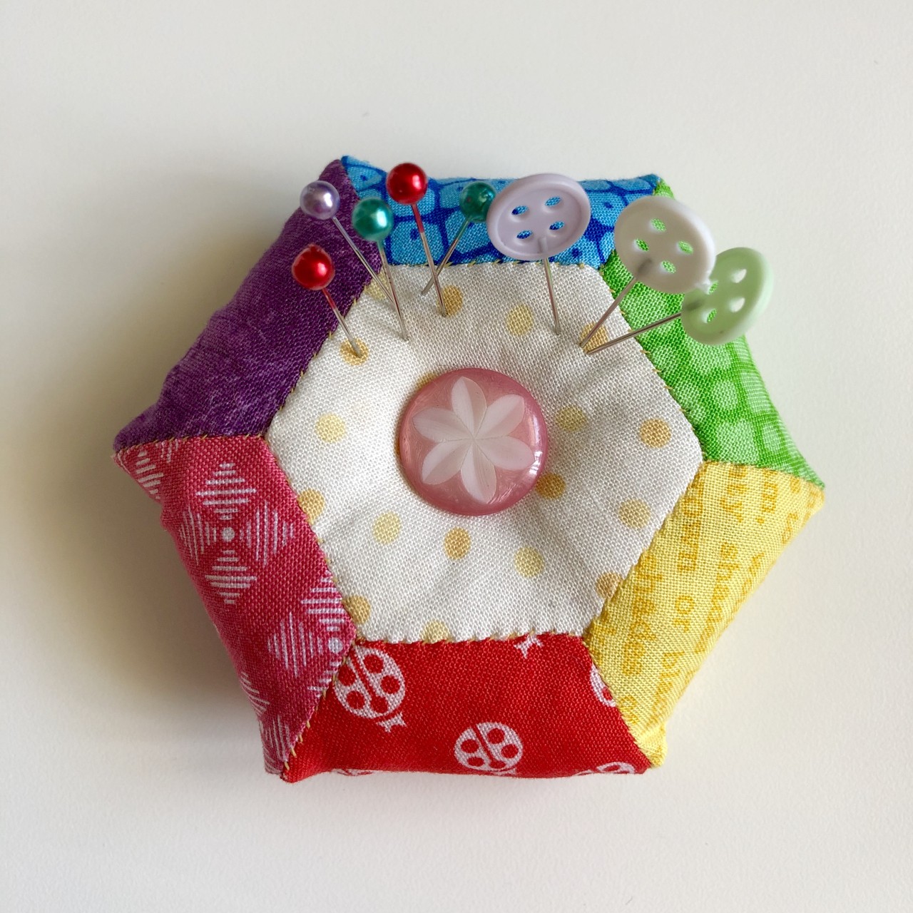 We'll work together to create your first hexagon and then easily make a few more until you have enough needed for your choice of pincushion or coaster. You'll be completely finished in just a few hours. Below you'll see the real projects that previous students have made.